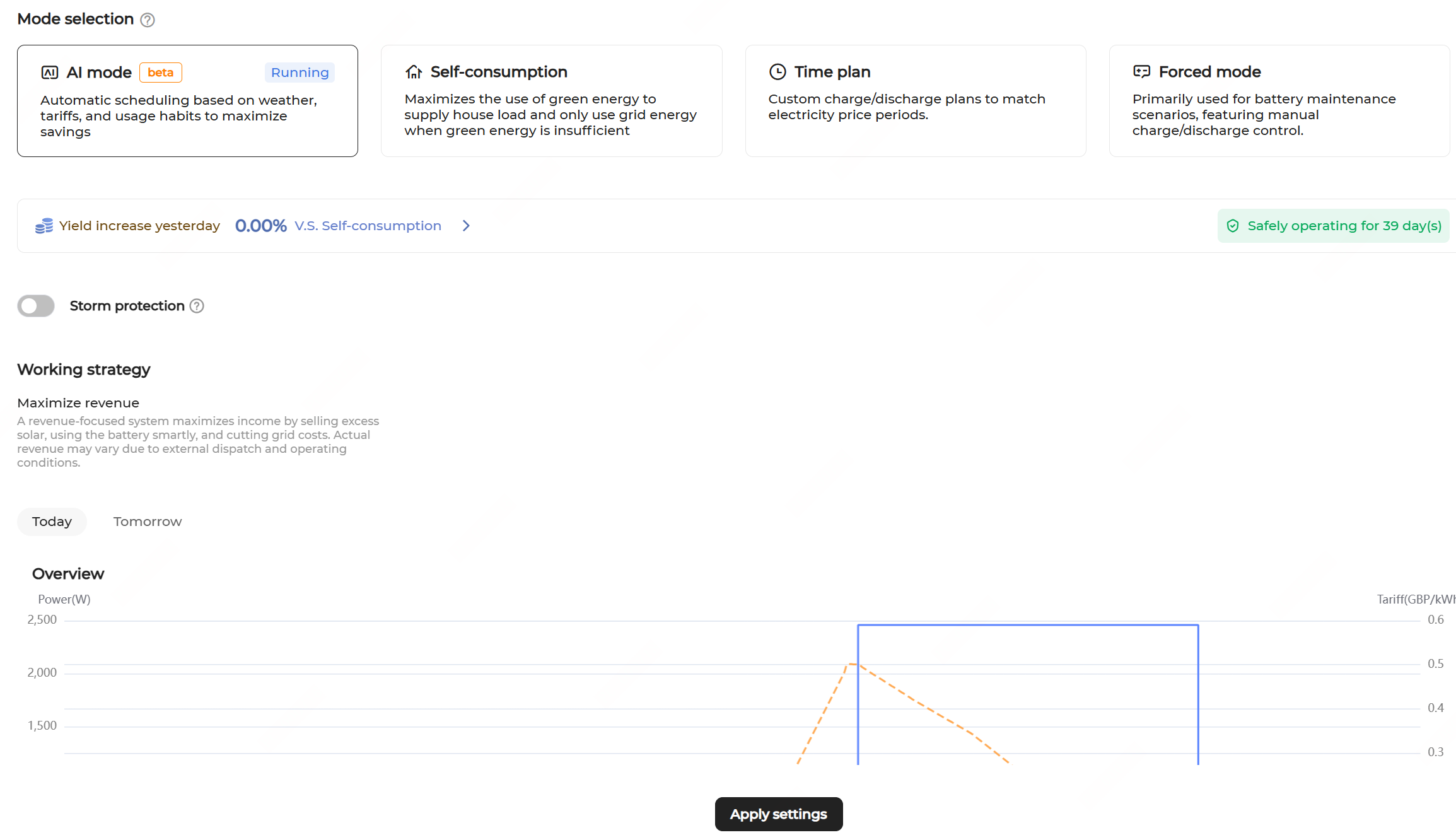 AI mode is supported only when the Consumption tariff type is set to Dynamic tariff or Time-of-use tariff.