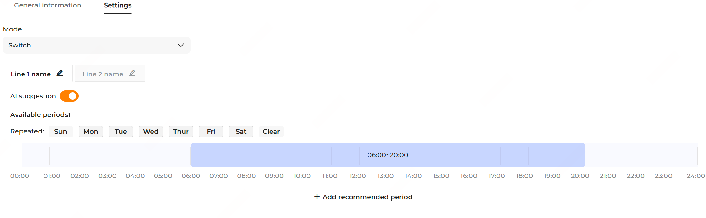 - Choose the recurrence date and drag the time bar left or right to adjust the start and end time for AI recommendations.
